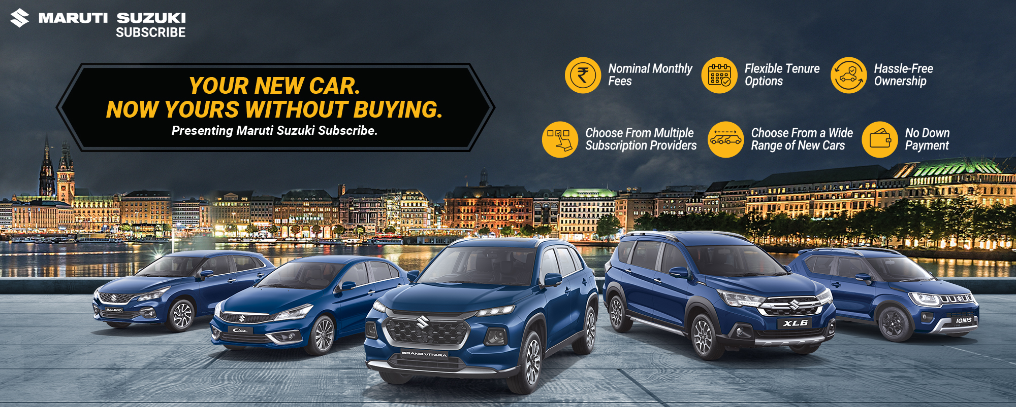 Maruti Suzuki Subscribe enables all customers to enjoy driving their preferred Maruti Suzuki cars without having to deal with all the financial responsibilities that come with owning a car.All you need to do is opt for a monthly subscription plan at a fixed monthly fee, which includes the routine maintenance and insurance costs, and choose a flexible tenure. At Deep Motors in, Bhawarnath, Azamgarh, all Hatchback, Sedan, SUV, the MUV models line-up includes Baleno, Invicto, EVitara, Jimny, Ciaz, Ignis, Fronx, Grand Vitara, XL6. Here, you will enjoy Maruti Suzuki Subscribe benefits such as: